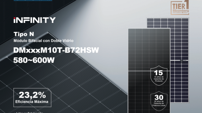 DetallesDM580M10T-B72HSW 580Wp MÓDULO FOTOVOLTAICO MONOCRISTALINO TIPO-N BIFACIAL TIER1 2278X1134X30 15 años de Garantía de Producto – 30 años de Garantía de Potencia Lineal DMEGC SOLAR: Líder en Fabricación con más de 40 años de experiencia en Fabricación de Alta Tecnología. Pida precio sin compromiso a: oficina.cial1@comesur.es Más info aquí