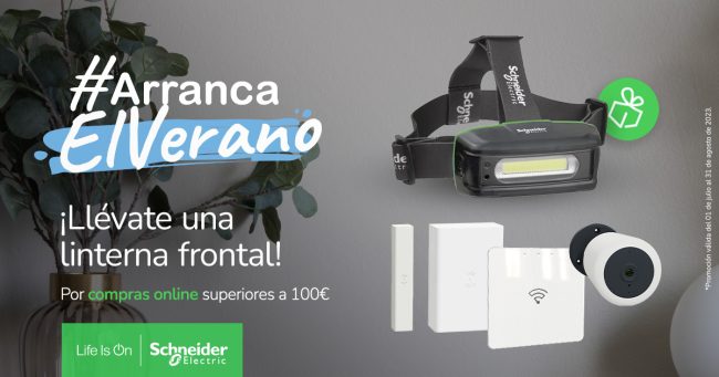 Campaña Summer Outdoor SCHNEIDER – #ArrancaElVerano Schneider lanza una campaña para toda la distribución con vigencia del 1 de julio al 31 de agosto. Descuento del 10% (On/Off). Regalo de linterna frontal para compras superiores a 100€. Agrupaciones (Residencial): Baja Tensión, Wiser, Mureva, Thorsman, Kaedra.