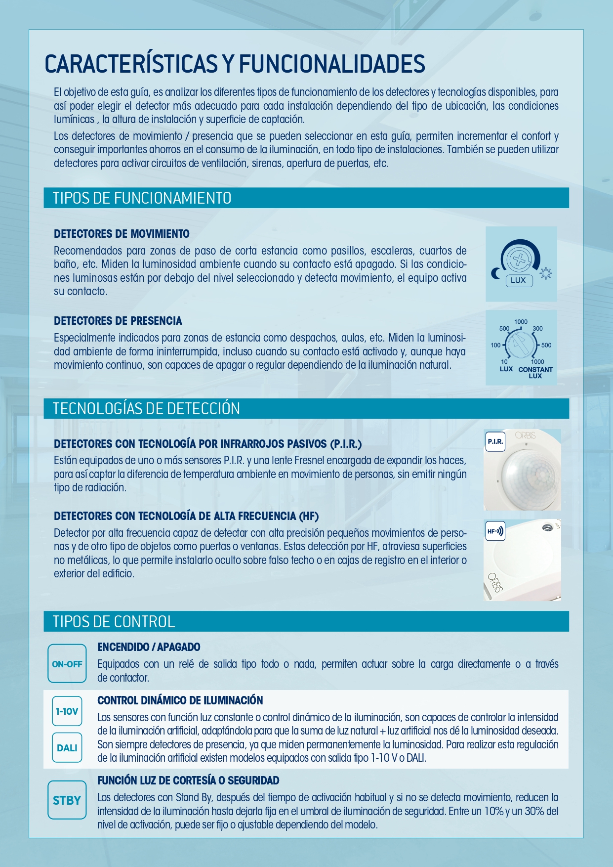 ORBIS ha editado la Guía de Selección de Detectores de Movimiento/Presencia para poder analizar y seleccionar de forma rápida y sencilla qué tipo de detector se ajusta más a cada instalación.