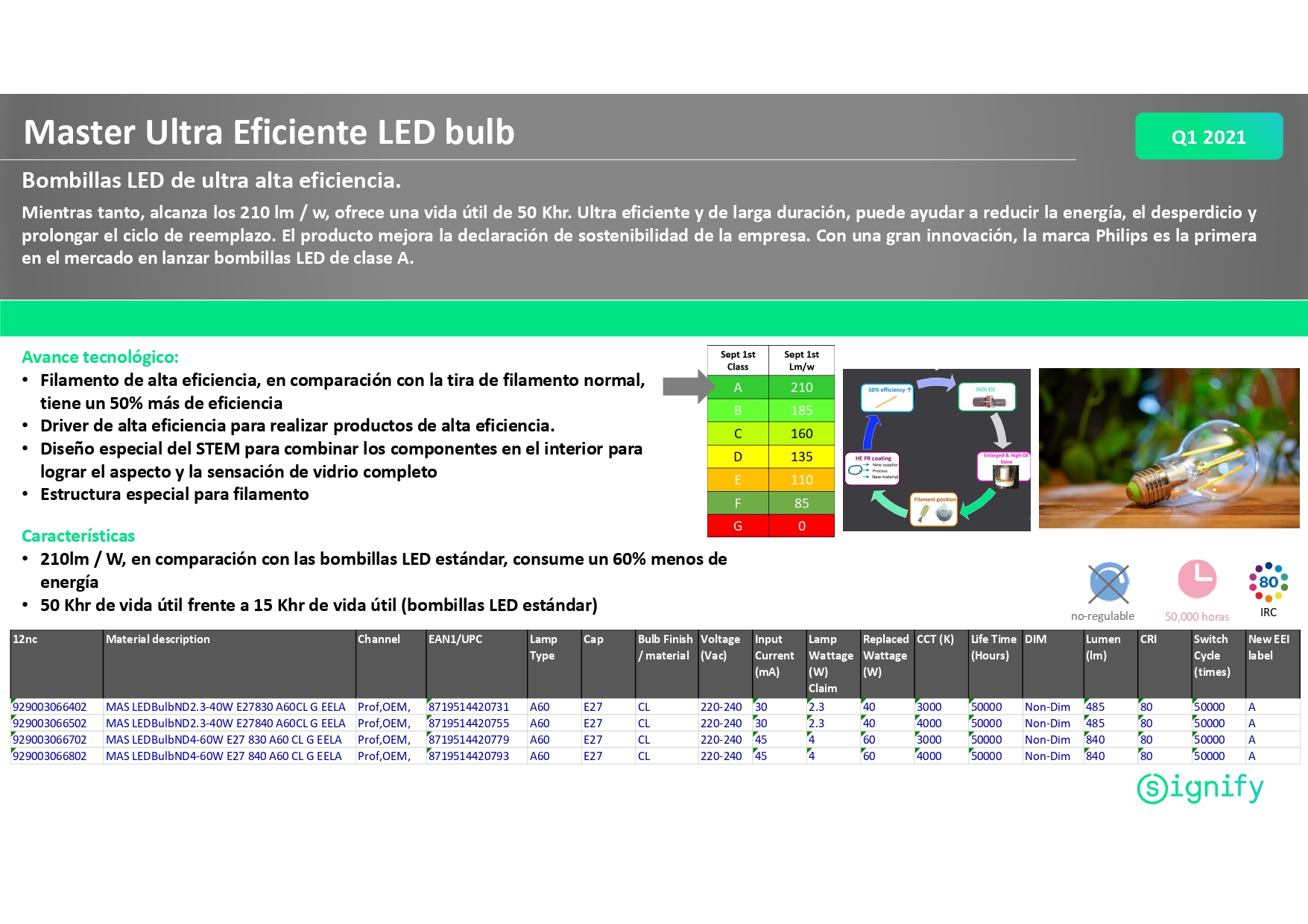 Bueno para el planeta y el bolsillo: Signify presenta las nuevas bombillas LED clase A de Philips, las bombillas con mayor eficiencia energética
