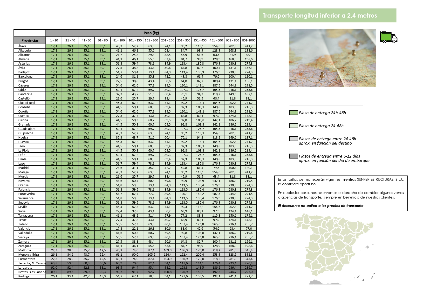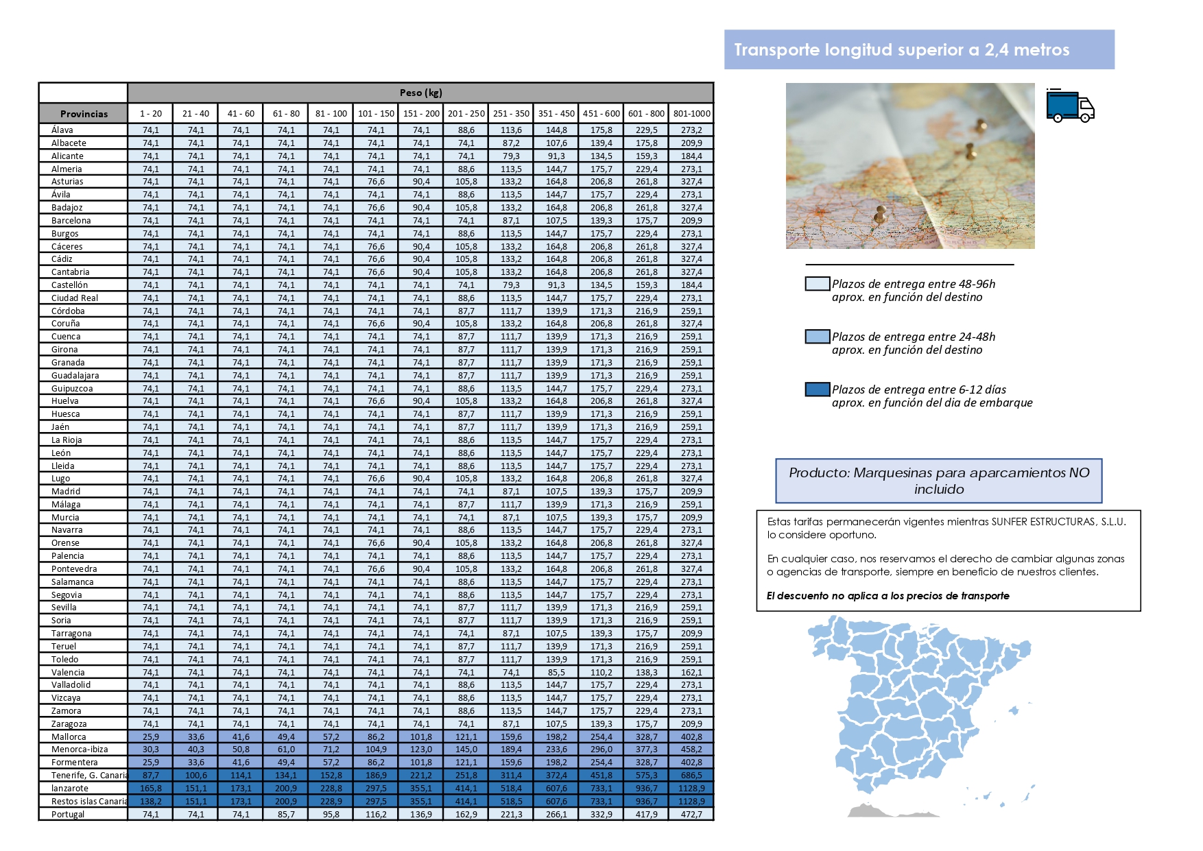 TARIFA PVP (descuento para el instalador, pregunte por los portes)
