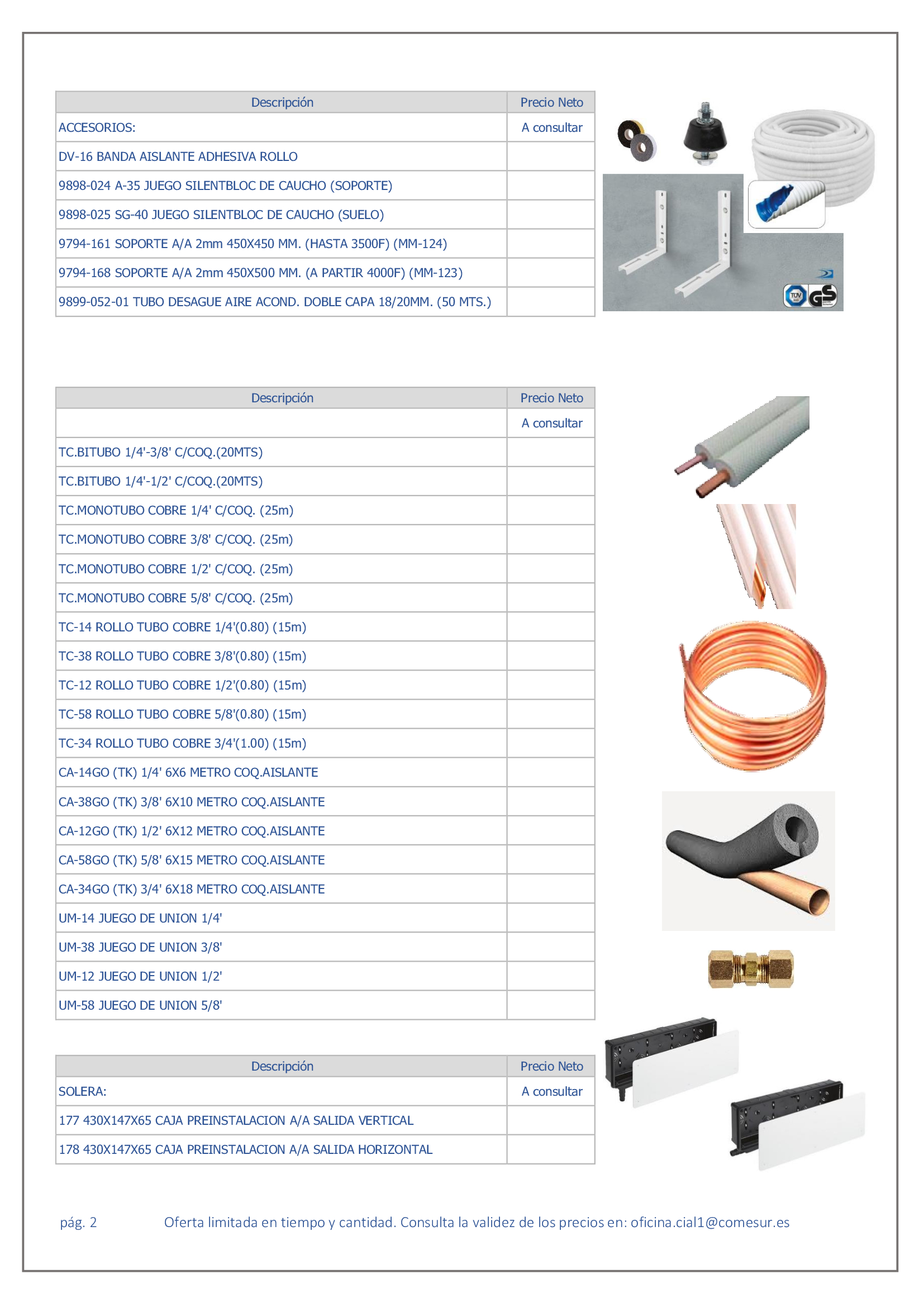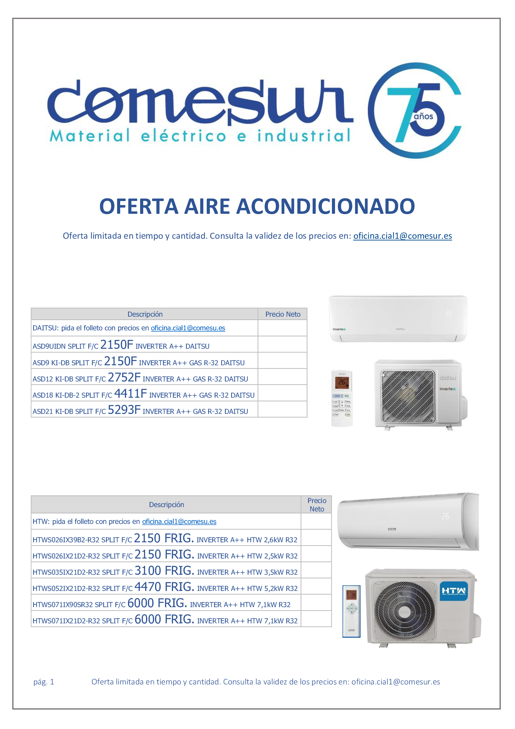 Oferta limitada en tiempo y cantidad. Consulta la validez de los precios en: oficina.cial1@comesur.es