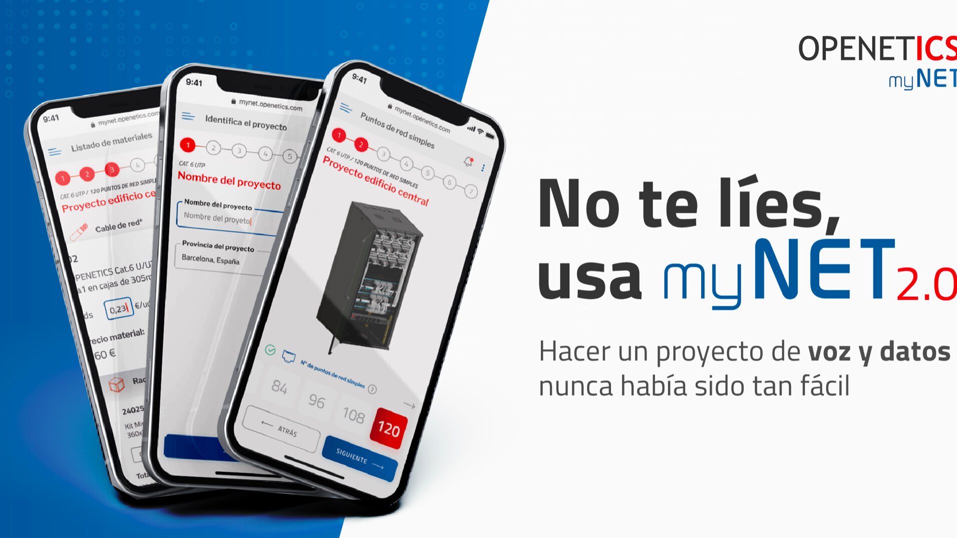 OPENETICS lanza myNET 2.0, un configurador mucho más ampliado que te permite configurar proyectos en Cat. 6/ 6A, protecciones UTP e FTP y comprometidos totalmente con la normativa CPR actual. El nuevo myNET 2.0, permite seleccionar cables de les Euroclases Dca y Cca. Si lo que buscas es poder hacer tus propios presupuestos con tu logotipo y sabiendo todo el material que necesitas al instante, está claro que myNET 2.0 se convierte en tu nuevo socio digital.