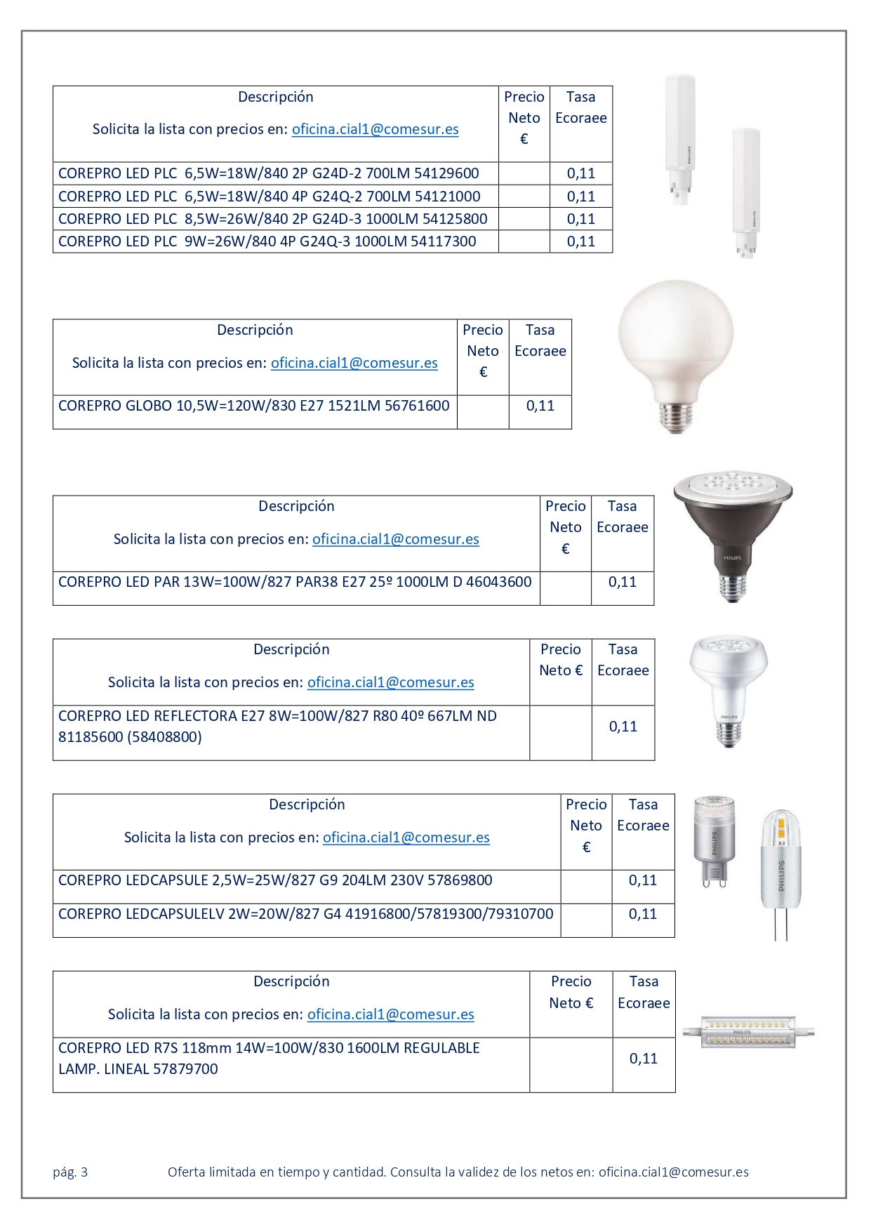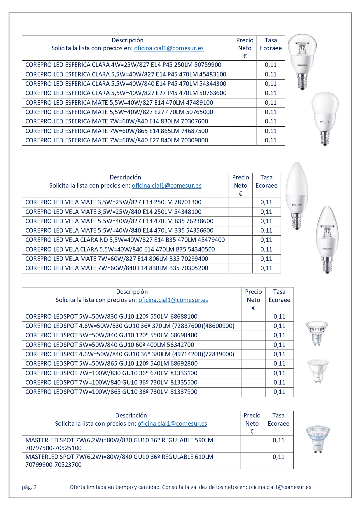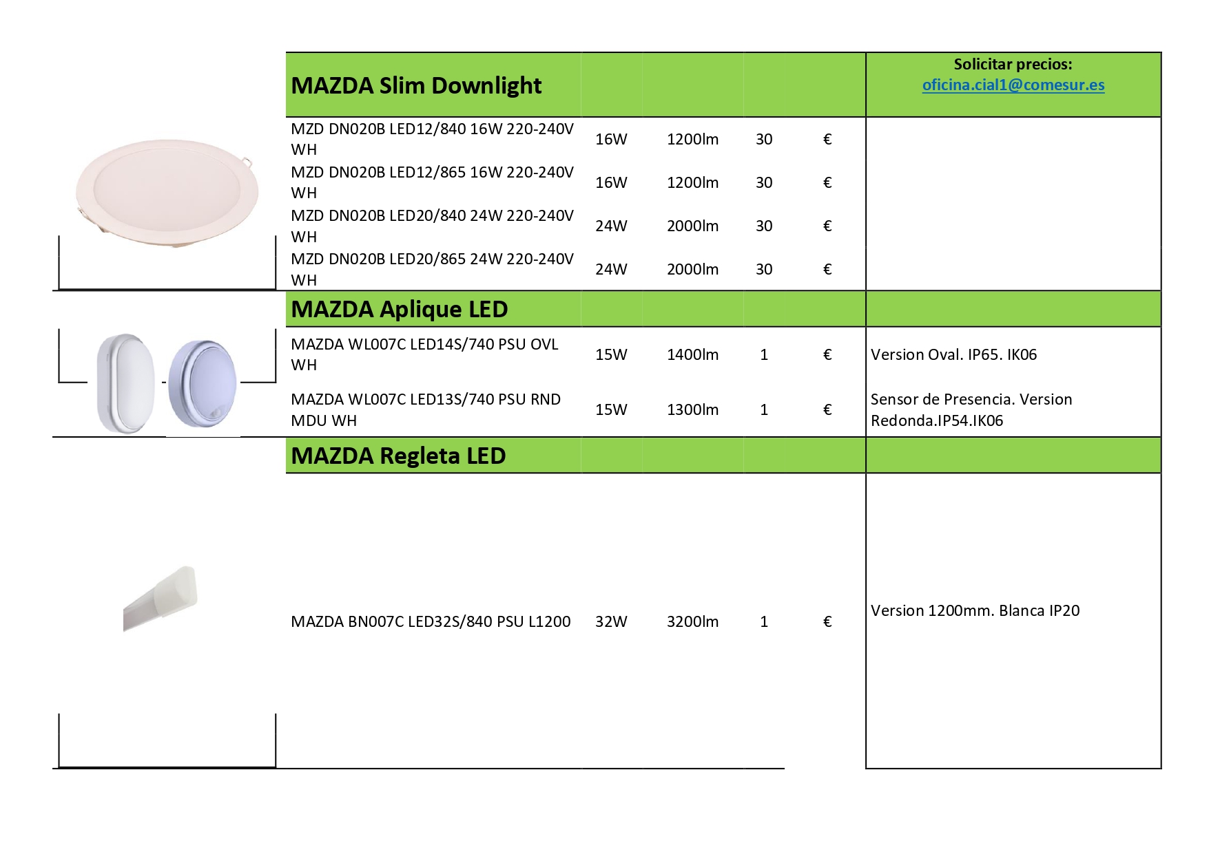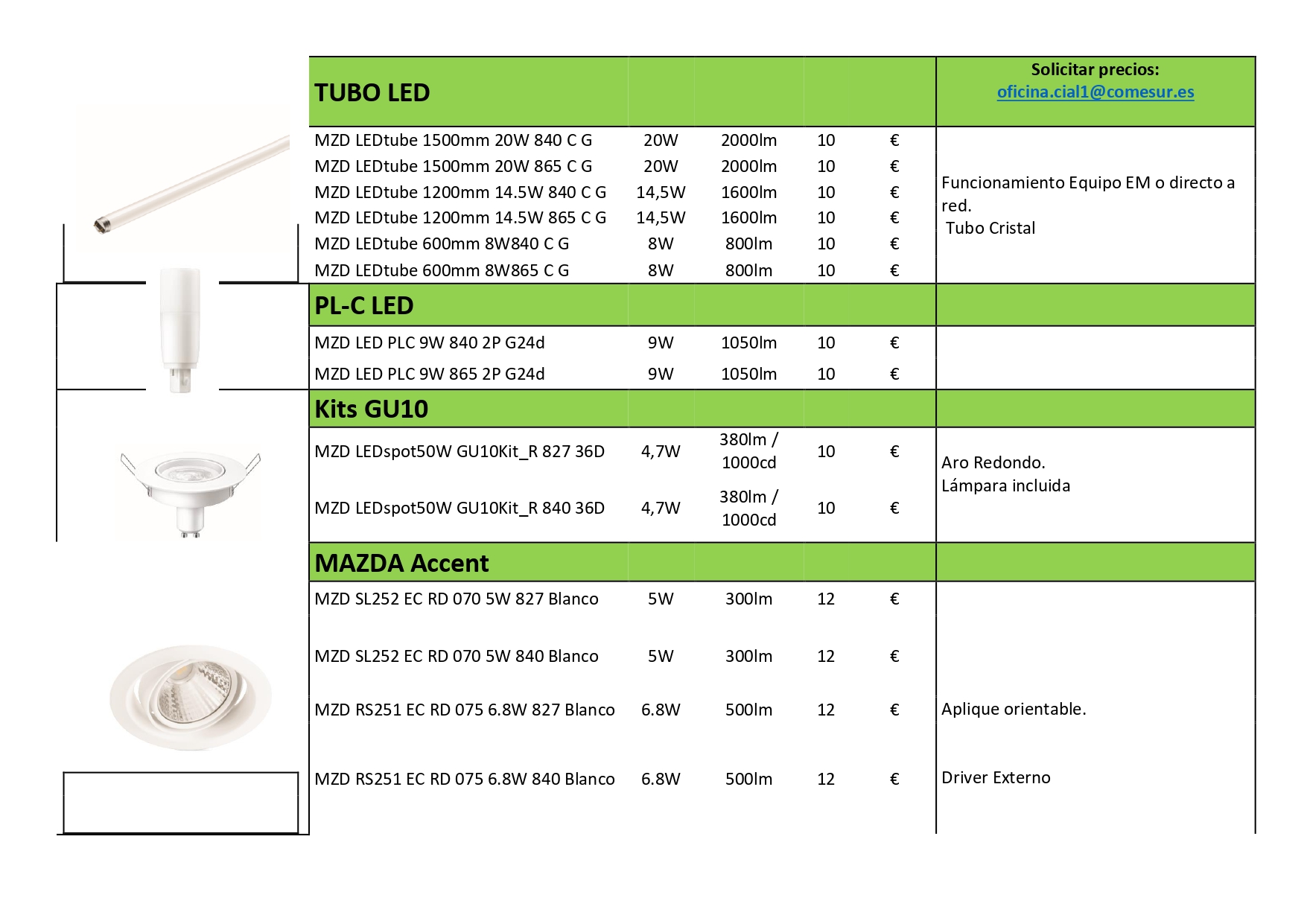 Solicita la lista con precios en: oficina.cial1@comesur.es