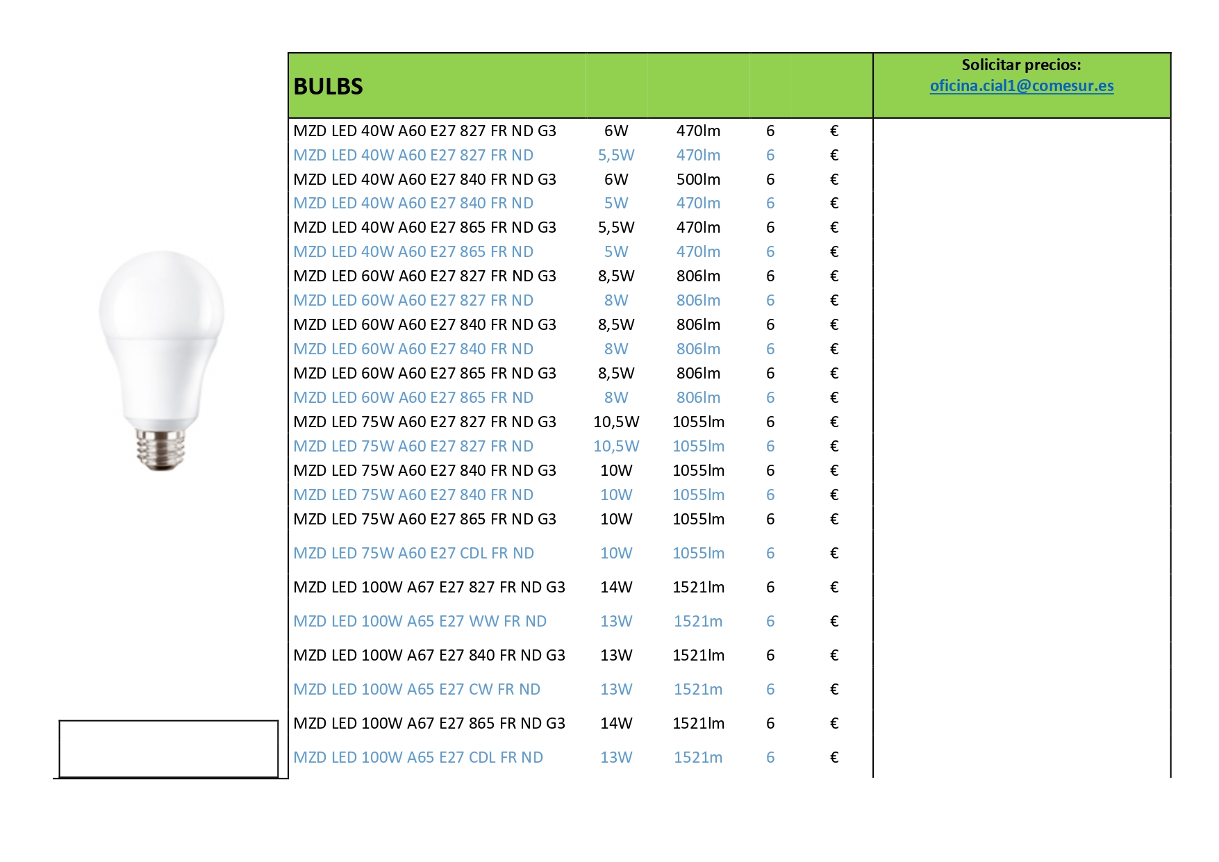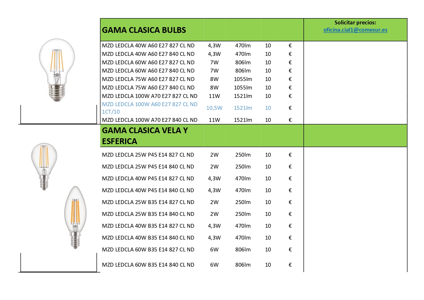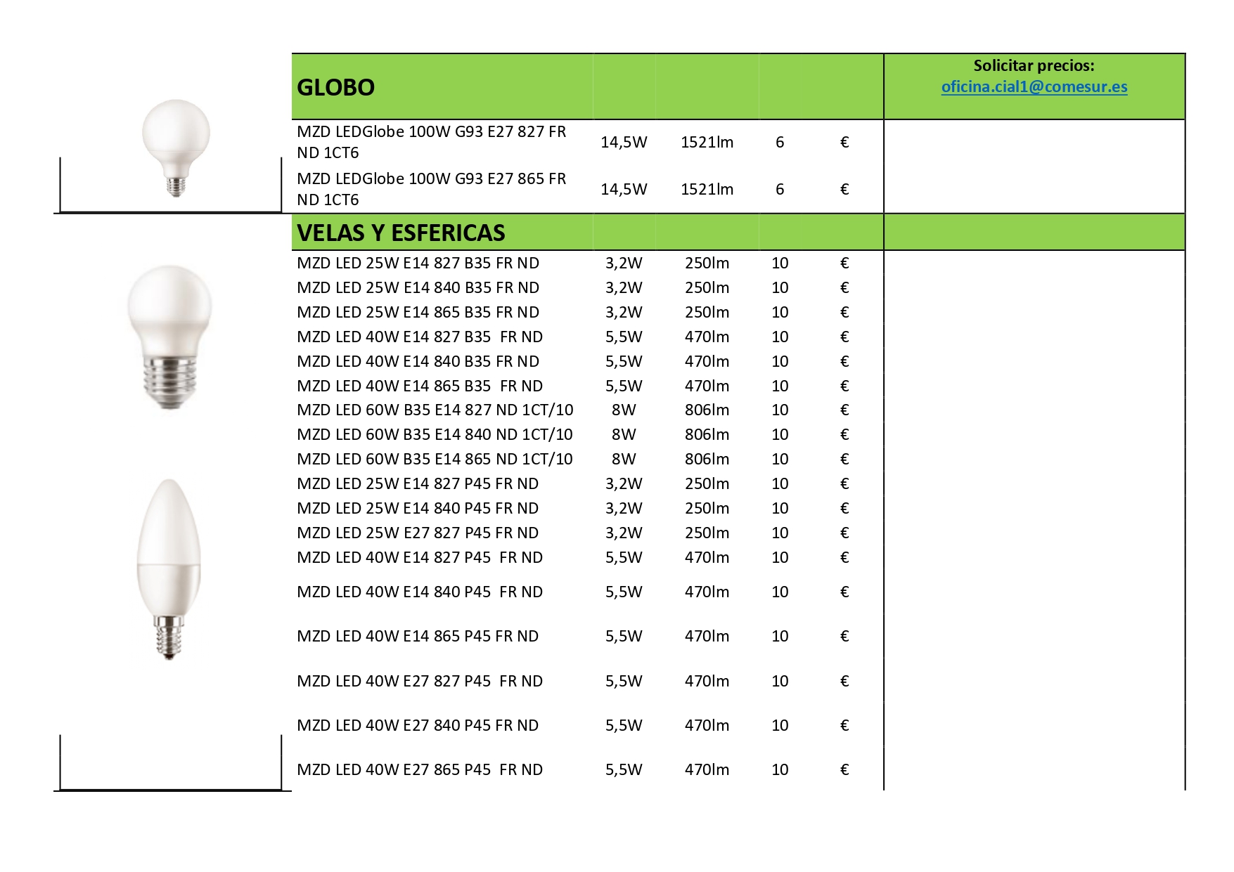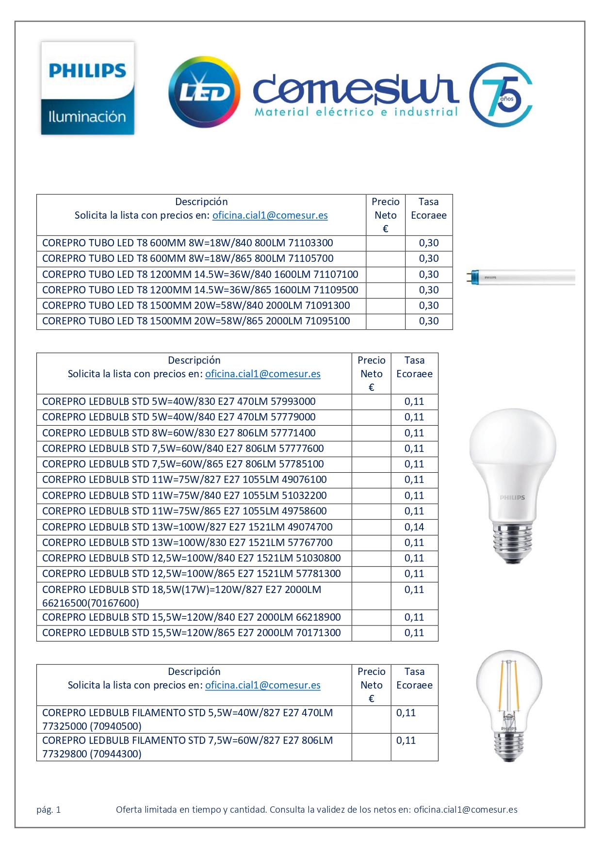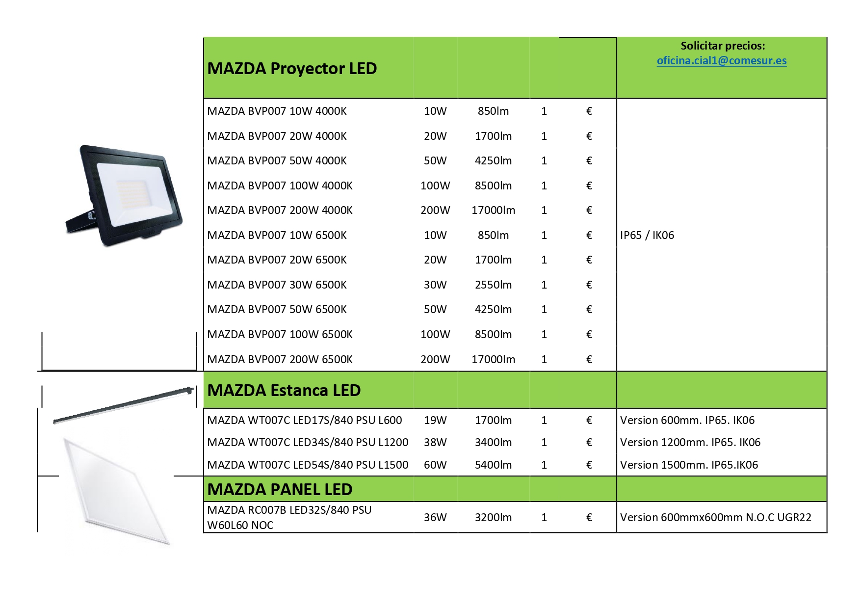 Solicita la lista con precios en: oficina.cial1@comesur.es