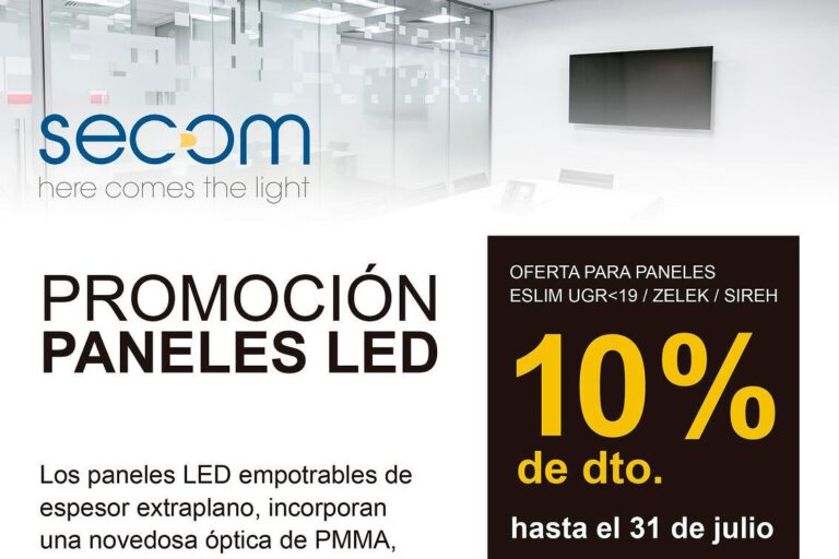 Disfruta de un 10% de descuento en la gama de paneles LED empotrables de SECOM ILUMINACIÓN + info en oficina.cial1@comesur.es