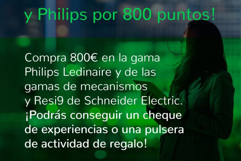 Entre el 15 de Septiembre y el 30 de Noviembre de 2021, por la compra de 800€ de productos de la gama Philips Ledinaire y de las gamas de mecanismos y Resi9 de Schneider Electric tienes premio Tus compras tienen premio Consigue aún más por tus compras con esta campaña en colaboración entre dos de…