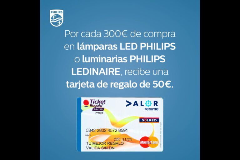 PROMO PHILIPS: compra 300€ y recibe una tarjeta regalo con 50€ para gastar donde tú quieras No te pierdas nuestra oferta: por cada 300€ de compra en lámparas LED PHILIPS o luminarias PHILIPS LEDINAIRE, recibe una tarjeta de regalo de 50€ para gastar donde quiera. Es una tarjeta MasterCard con un saldo activado de 50€. – Hasta el…