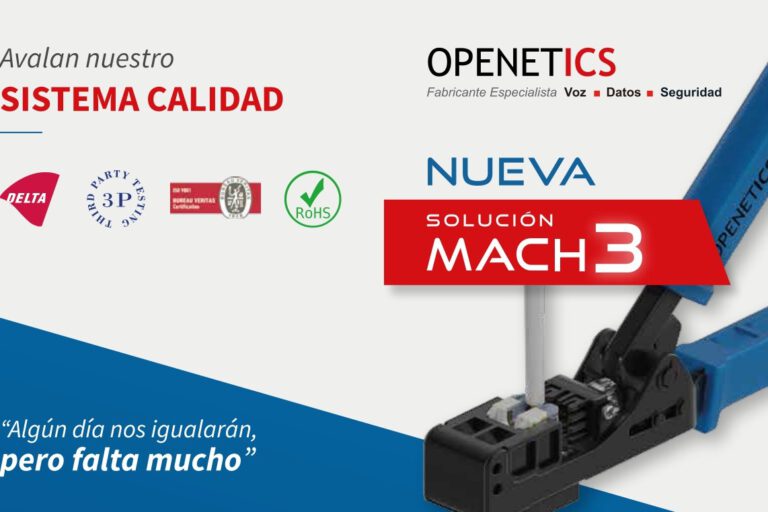 La solución Mach3 de OPENETICS brinda múltiples ventajas y comodidad al instalador a la hora de hacer el crimpaje en campo de los conectores UTP Cat.6 y 6A. Consultas: oficina.cial1@comesur.es Ventajas de la solución Mach3: Tiempo de conexión: 4 segundos Crimpaje de los 8 conductores en 1 impacto Seguridad de conexión: Muy alta Fallos…