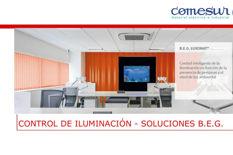 ¿Tienes algún proyecto relacionado con la eficiencia energética (detectores, regulación en función del aporte de luz natural, DALI…)? Sea grande o pequeño, te asesoramos sin compromiso: oficina.cial1@comesur.es CONTROL DE ILUMINACIÓN -SOLUCIONES B.E.G.