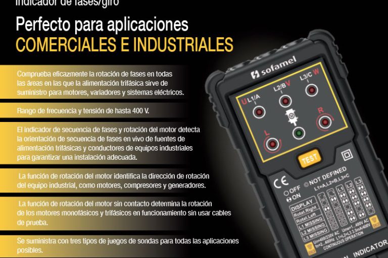 Se utiliza para comprobar la dirección del campo magnético del sistema trifásico, la rotación de fase y la dirección de rotación del motor. La dirección de rotación del motor (sentido de giro) se puede detectar colocando IRP-400 sobre el motor y alineándolo con el eje de transmisión, sin necesidad de conectar ninguna sonda o cable.…