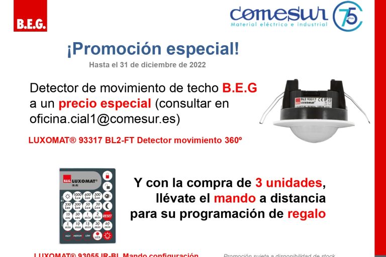 Detector de movimiento de techo BEG a un precio especial (consultar en oficina.cial1@comesur.es) Y con la compra de 3 unidades, llévate el mando a distancia para su programación de regalo. MANDO PARA DETECTOR MANDO A DISTANCIA POR INFRARROJOS PARA AJUSTAR O CAMBIAR LOS PARÁMETROS CÓMODAMENTE, SOPORTE DE PARED INCLUIDO DE SERIE., FÁCIL PROGRAMACIÓN DE LOS…