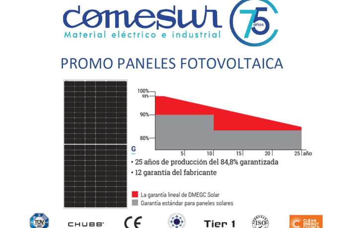 MÓDULOS FOTOVOLTAICOS EN STOCK PRECIOS NETOS ESPECIALES Consultas: oficina.cial1@comesur.es Fundada en 1980, DMEGC Solar trabaja con el compromiso de ser la empresa de renovables líder en el mundo. Fabrica módulos fotovoltaicos desde 2009 y ha alcanzado una capacidad de producción de 500 MW de obleas, 10 GW de células y 5 GW de módulos. “Con su…