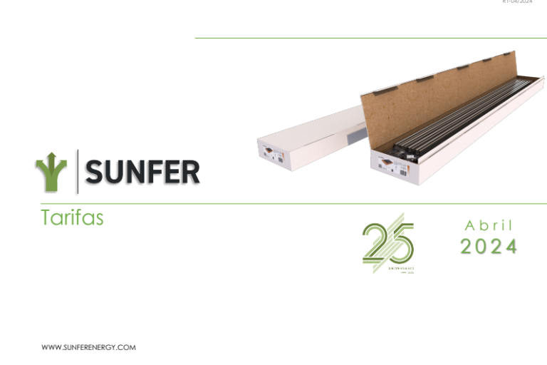 Tarifas abril 2024 – SUNFER Ya tenéis a vuestra disposición las nuevas tarifas de Sunfer, actualizadas en abril de 2024. Puedes echar un vistazo aquí: ¡Recuerda actualizar el Catálogo Técnico para estar al día de nuestras novedades! Descargar catálogo PDF oficina.cial1@comesur.es