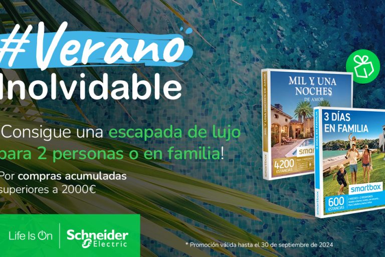 ¡Disfruta de un verano inolvidable! Schneider Electric premia tus compras con una escapada de lujo para dos personas o un viaje en familia Rellena el formulario, elige la experiencia del rango de tu importe y envía tus facturas por la compra de mínimo 2000€ en productos seleccionados.