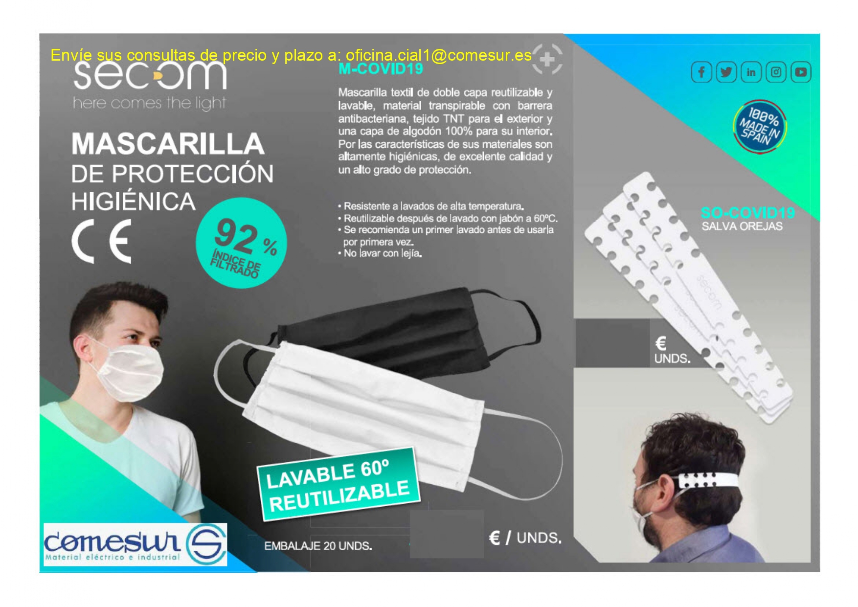 Comesur os trae una nueva campaña con productos para protección contra el COVID-19. Se trata de una amplia gama de productos de contrastada calidad a precios más que atractivos: